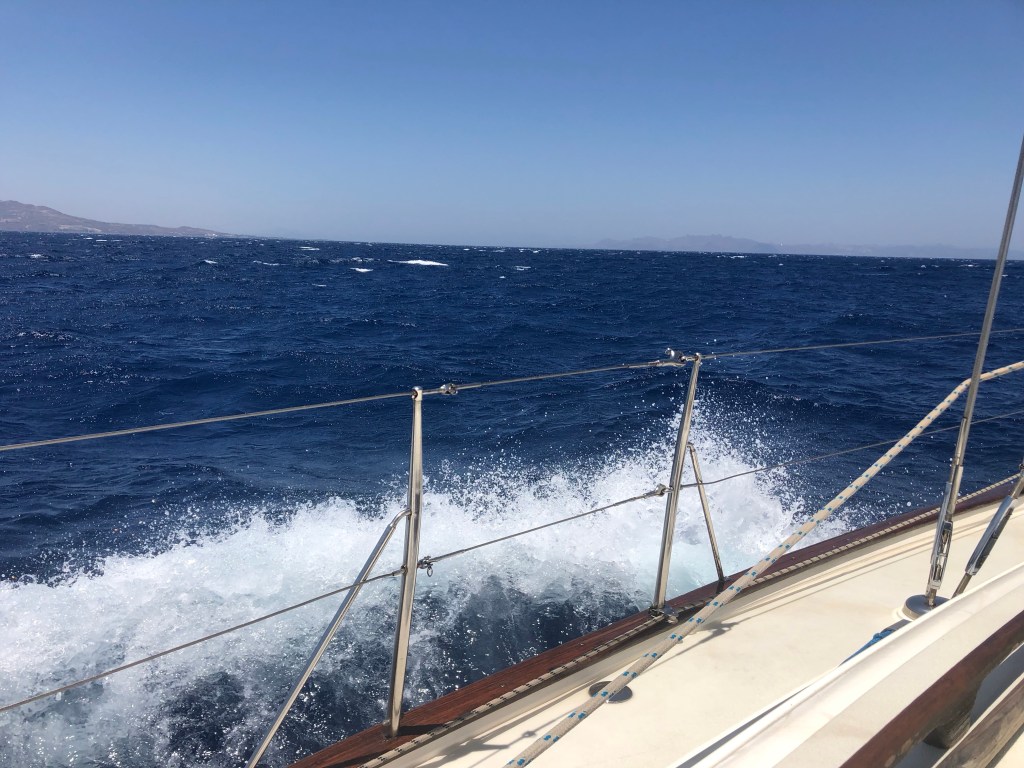 By early afternoon the wind picked up again and after our previous windy night we decided to leave to head 23 nm north towards Bodrum. As soon as we were out of the bay in the open water there was a lot of swell. The wind was only blowing 20 kts but from the north, the swell was increasing and pushing us back, the most speed we could manage was 4 kts, it was going to be a long journey!
