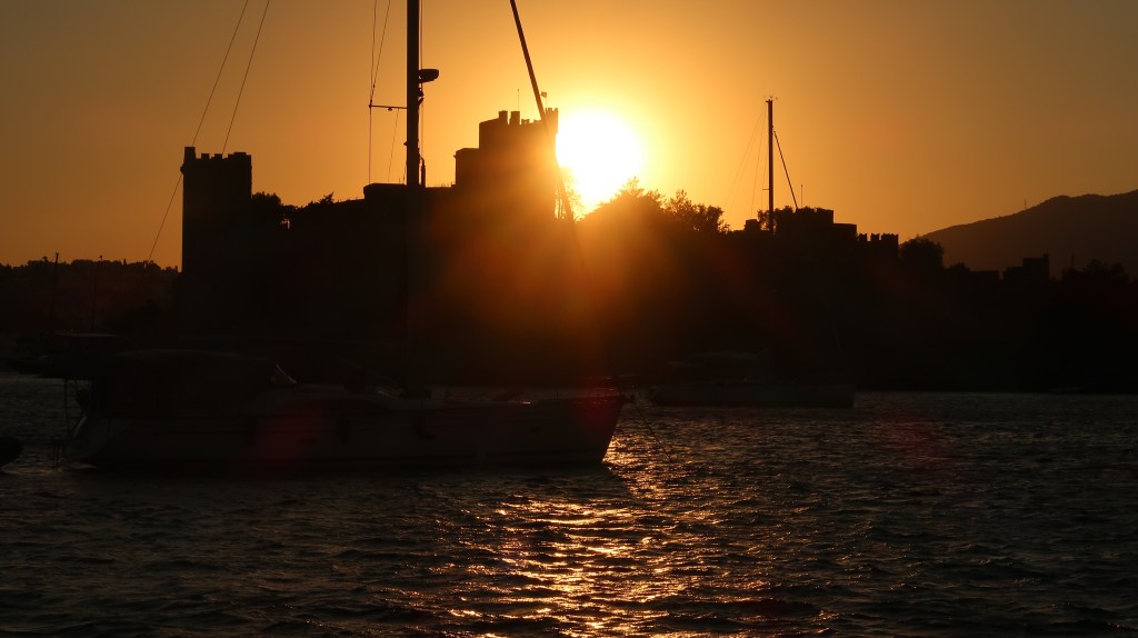 Eventually the swell did reduce and for the last hour of the journey our speed picked up and we arrived at Bodrum where we anchored in the main bay beside the castle.