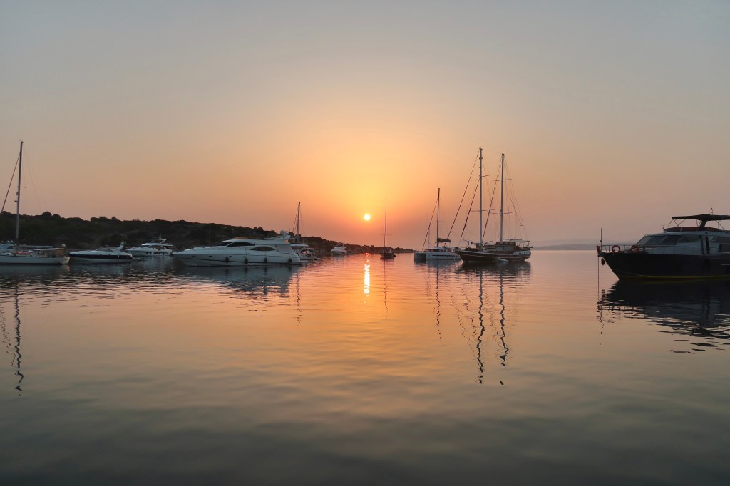 After a couple of hours the wind arrived so the sails went up. It was coming from directly in front of us so we were sailing slightly off course. Ziggy was tacking back and forth all afternoon and making slow progress, then the wind dropped and we were struggling to achieve 3 kts. With the evening approaching, the sails came down and the engine was fired up for the last hour of the journey to Port Mersin on the south coast of the Çeşme peninsula.