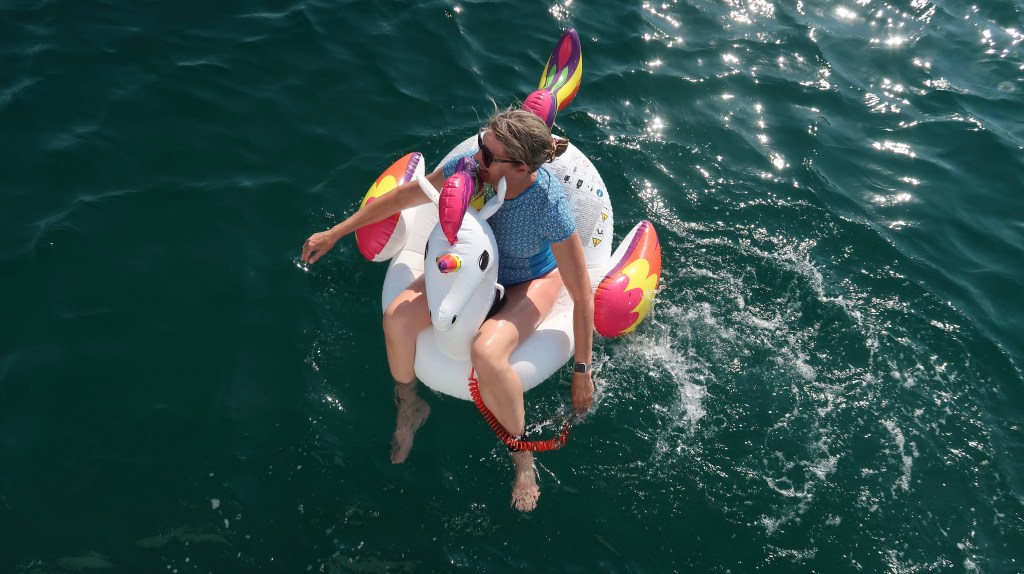 We stayed in the gulf for the following couple of days between the two anchorages. During the week, everyone had been on the unicorn, (some better than others), so it was time for the annual challenge, this year it was unicorn races around the boat, it all got very competitive but no unicorns were injured. I know it’s not about winning and it’s the taking part that counts, but I’m sure you want to know who won….it was me!