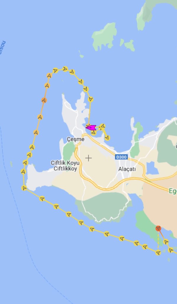 It was a lovely clear sunny day with no wind as we left Kuşadası, but once we were outside of the marina, the mist descended on us as we motored into a very eerie flat sea. We planned our route to travel 46 nm north towards the Çeşme peninsula.
