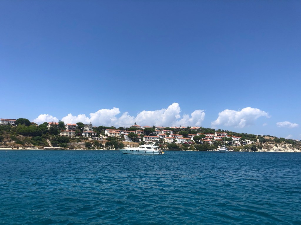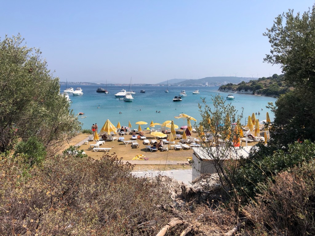 As we approached Çeşme, we first visited some of the bays along the coast for options to bring our friends before dropping our anchor in Baba Koyu, a pretty bay with clear water, smart buildings, surrounded by hills, trees and beaches.