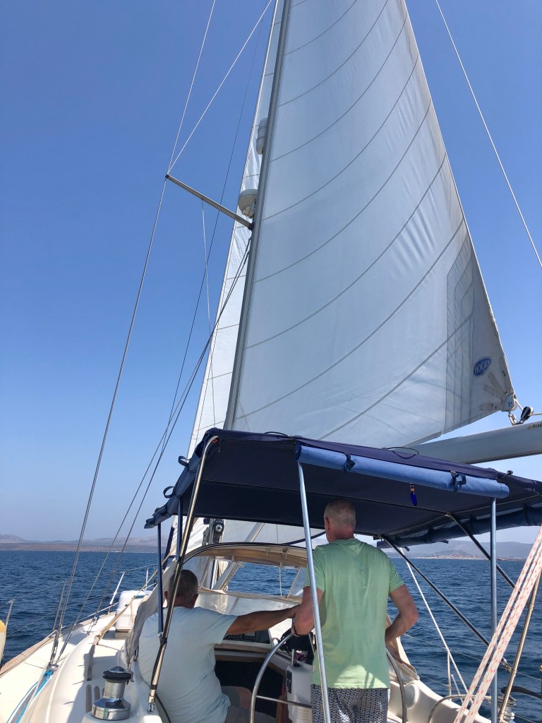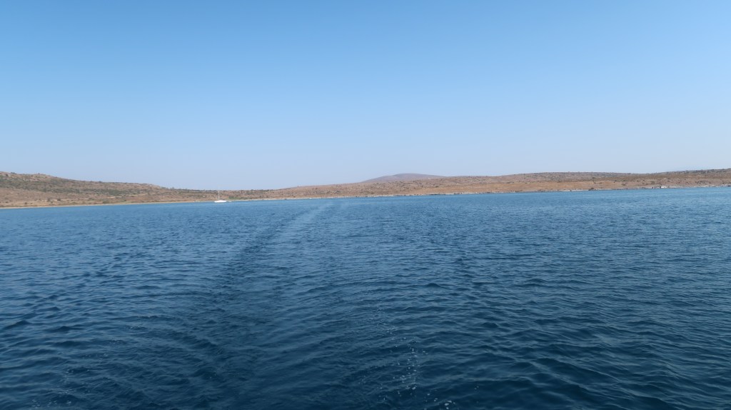 The following day the wind was perfect for a gentle sail so we lifted the anchor and headed 10 nm northeast further into the gulf of Ildir. First we took a detour back to where we had previously seen dolphins, but unfortunately they didn’t come out to play with us this time.