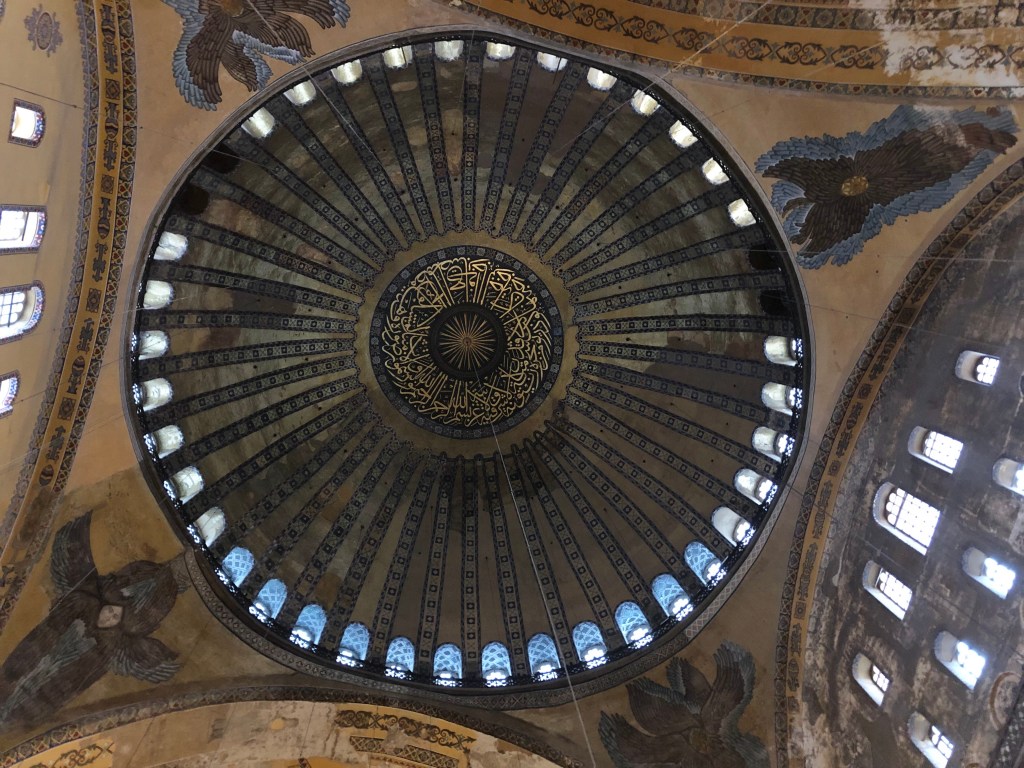 The impressive central dome is 23.5 metres in diameter and 43 metres high, but unlike the seemingly unsupported dome at the Hagia Sophia, there are four immense pillars to support it all.