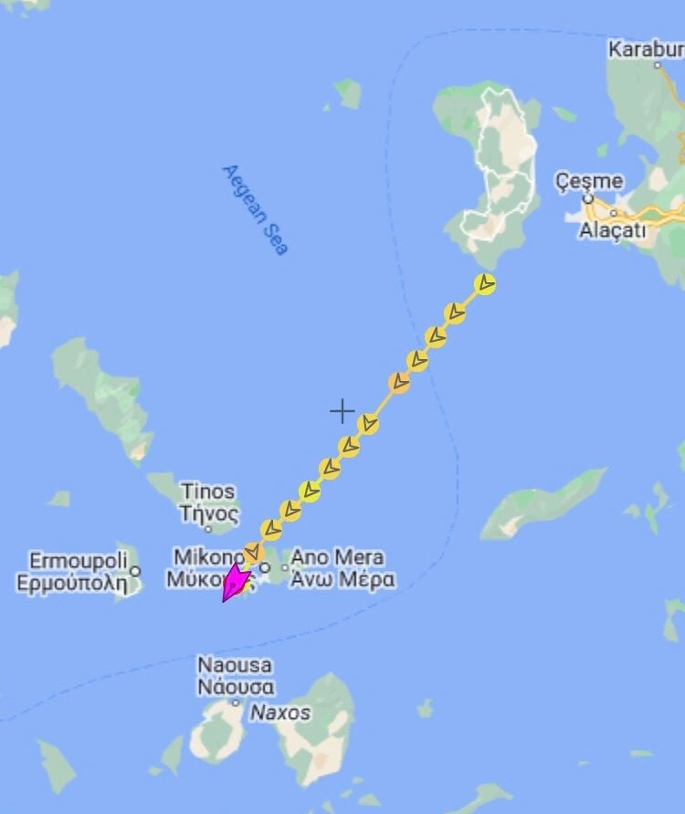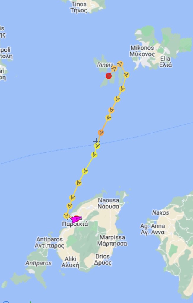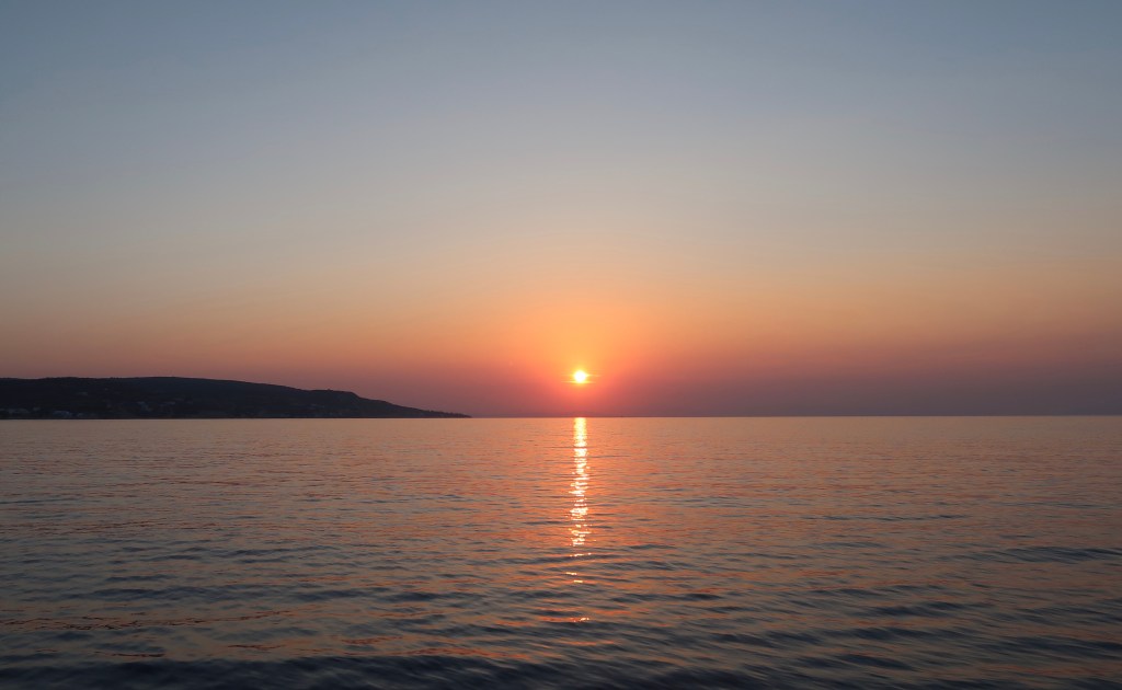 After a night of rolling around in the swell, we weighed anchor at Komi as the sun rose, there was a light northerly wind so we sailed slowly out of the bay and set our course to travel 57 nm southwest towards Mykonos.