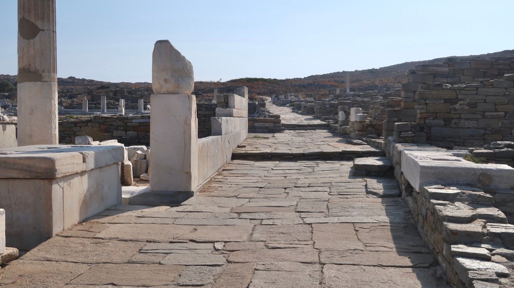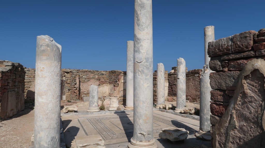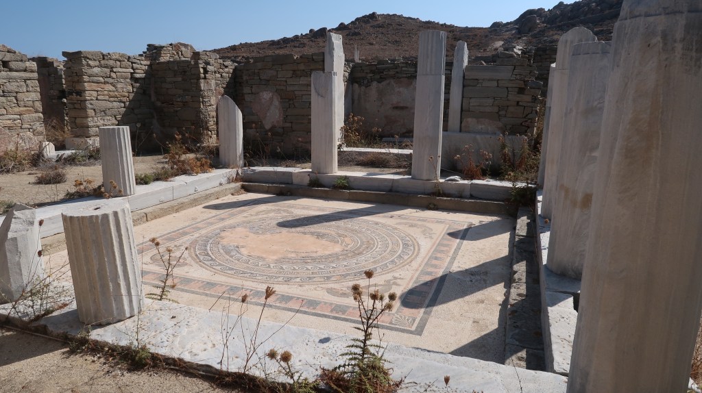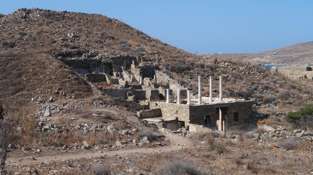 The earliest inhabitation of Delos was thought to be around 2,500 BC. They built their simple dwellings on the top of Kynthos hill, where they could easily watch the sea around the island for approaching enemies. They certainly had good views.