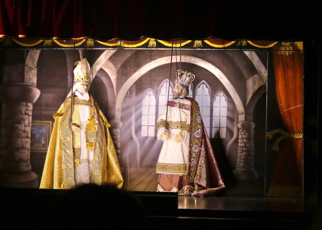 The battle scenes are fast and furious with fierce animals like dragons and snakes getting into the story. There is dramatic lighting and musical accompaniment, and the clash of metal swords on shields reverberated through the theater. One knight fell, then another; but Gradasso and Renaldo fought on ending with an epic battle where the puppets were being thrown aside and bodies were piling up!