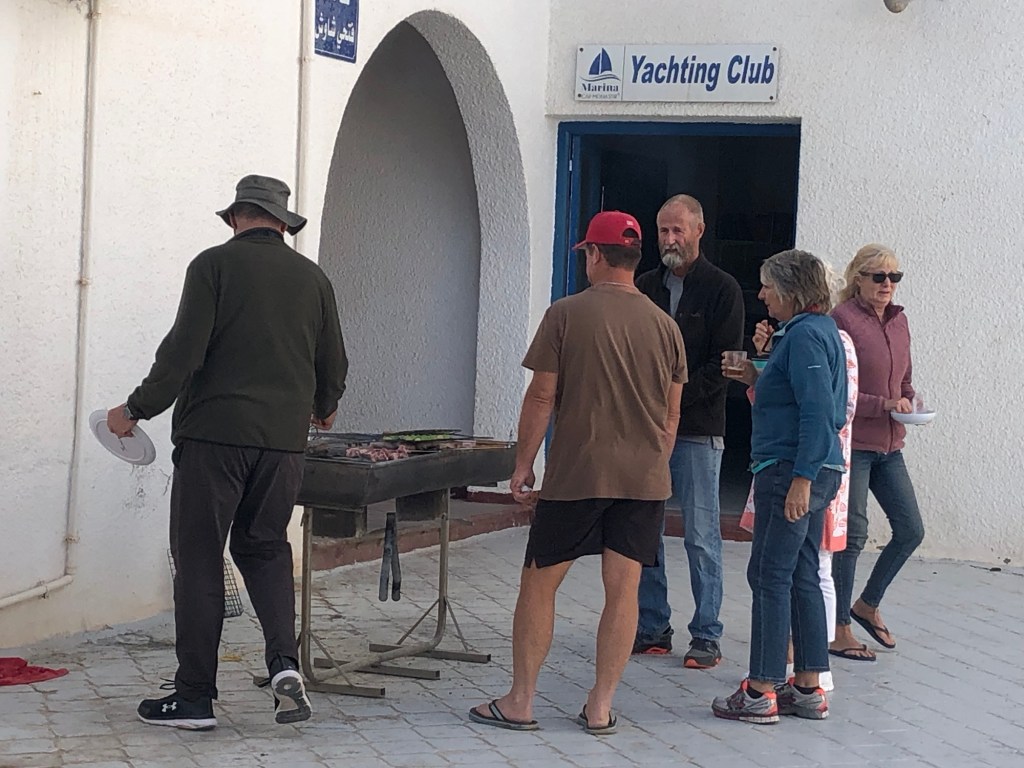 Our first task, once we were safely tied up in the marina, was to check in to Tunisia. This was an experience unlike any we’ve ever had before. The Marinaros took us in their tender across the marina to the port police and customs office. We completed all of the necessary paperwork which was reasonably straightforward but then the next stage was for the immigration and customs officers to visit the boat. I wasn’t quite ready for four people to all clamber aboard, it was hard for the two of us to keep track of them as they were all over the boat looking into cupboards and drawers. We must have passed the inspection as they were soon happy to confirm that we could stay and left the boat.