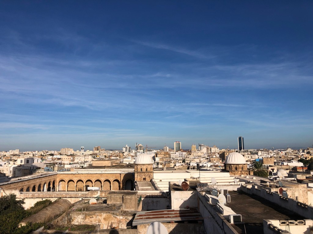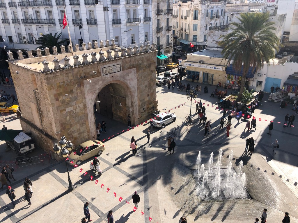 We locked up ZigZag and travelled to Tunis, the capital of Tunisia for a flight booked the following day. We had booked a hotel which was situated by the old town with great views of the entrance to the ancient medina which was first established in the 7th Century.