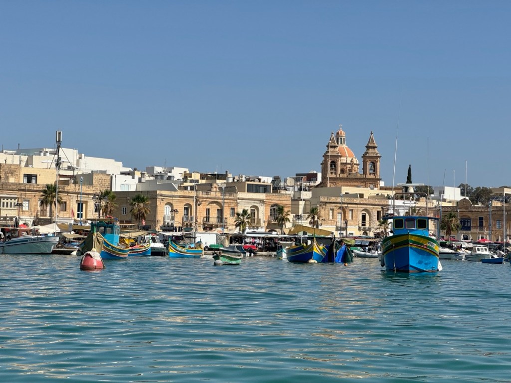 We left Ziggy in the bay and took Ed and Fred to the neighbouring traditional fishing village of Marsaxlokk ‘zigzagging’ between the many colourful wooden fishing boats called Luzzus, anchored in the bay.
