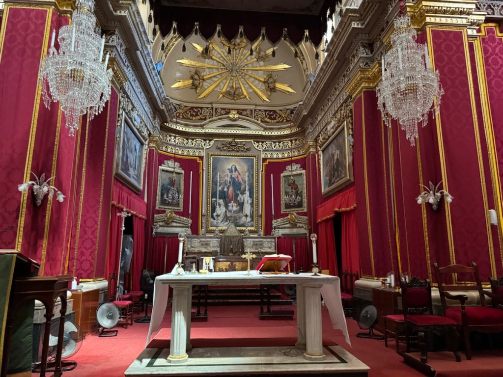 We managed to have a quick look inside before being ushered out as it was closing. The interior was decorated in gold, white and red with historical statues including one of the Madonna and Child.