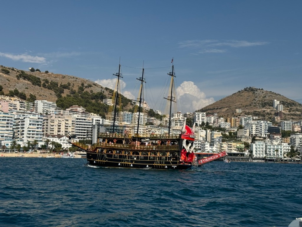 We decided that as we had to move the boat, we would just head to our next destination. Albania is just 20nm east so we put the sails up and set our course to Sarandë. We anchored in the large bay which is a big beach holiday resort surrounded by hotels and apartments, pirate ships, ferries, ribs and jet skis were all wizzing around the bay.