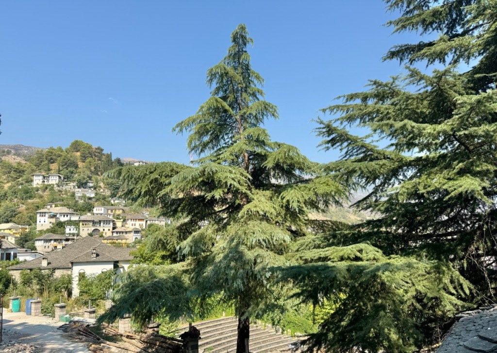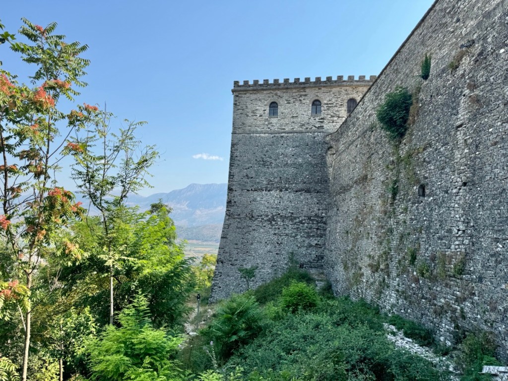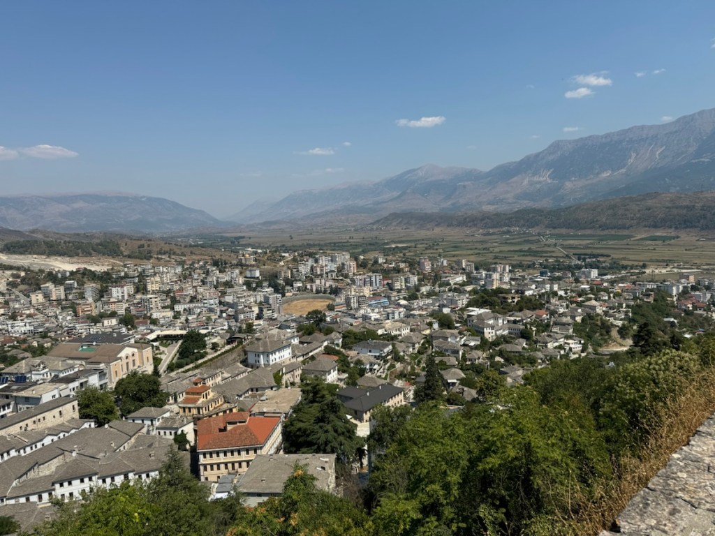 We decided to hire a car and explore inland. We drove through valleys and over mountains. The landscape was now completely different from the busy built up towns, and mostly looked to be uninhabited, we saw hardly any dwellings, only a few isolated farmhouses. Just after an hour we came to the city of Gjirokastër. Located in southern Albania, it is situated in a valley between the Gjerë mountains and the Drino river.