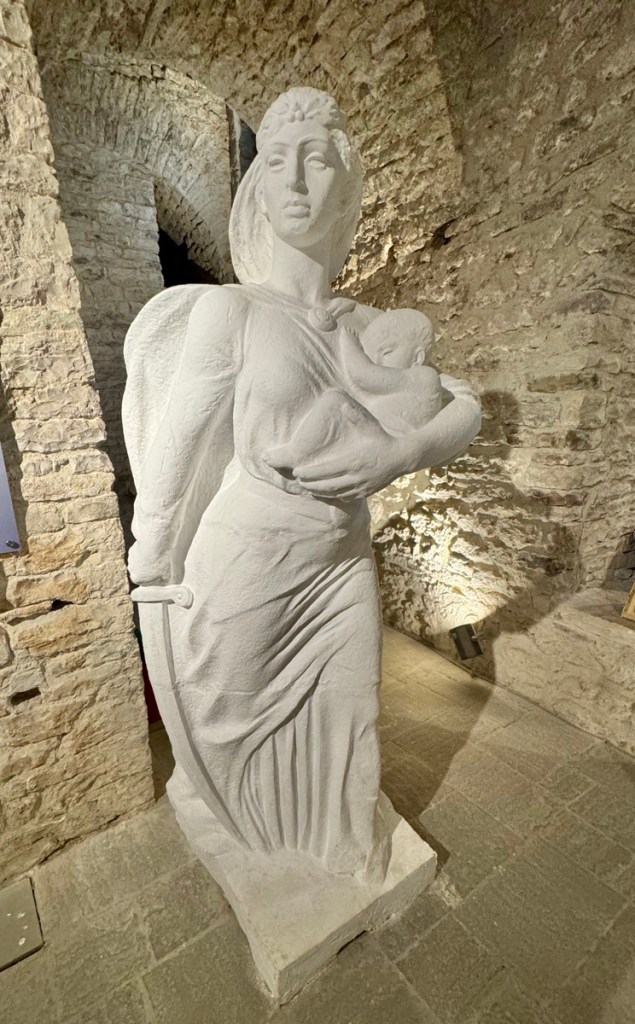 The origin of the name is unknown, a popular legend is that it refers to princess Argjiro who refused to surrender to the Ottomans and threw herself from the top of the castle battlements clutching her young child. There are various other theories but early records of Gjirokastër refer to the city and castle as Argyrokastron. There is a sculpture of the princess in the castle, as with all of the recent art on display here it had a very communist style to it.