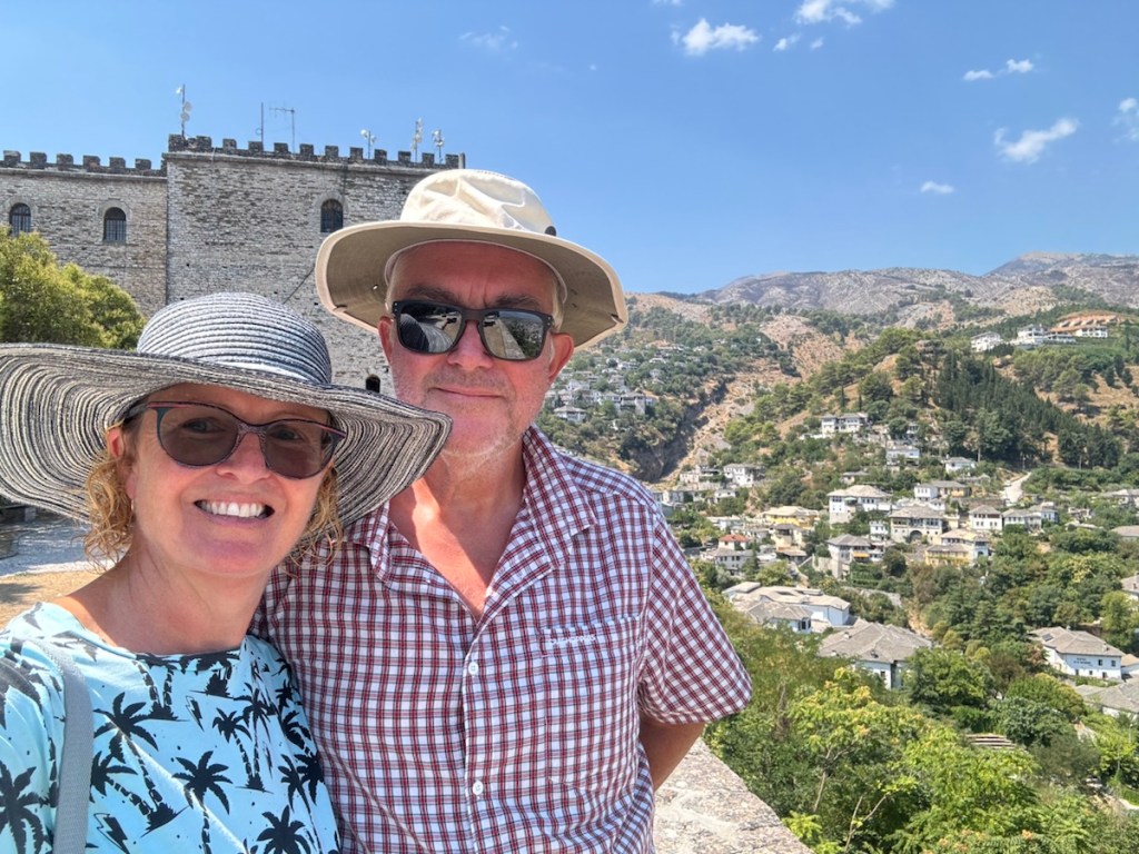 Albania does look lovely. The photo of the little town is really pretty. The photo of you and Paul is really nice. I hope you are enjoying being in Albania at the moment. We are in Greece. 😎