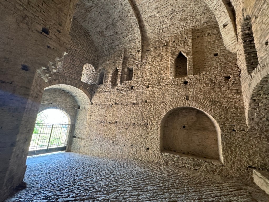 Outside, the large courtyard is full of old brick rooms and further archways, much of it now falling into disrepair.