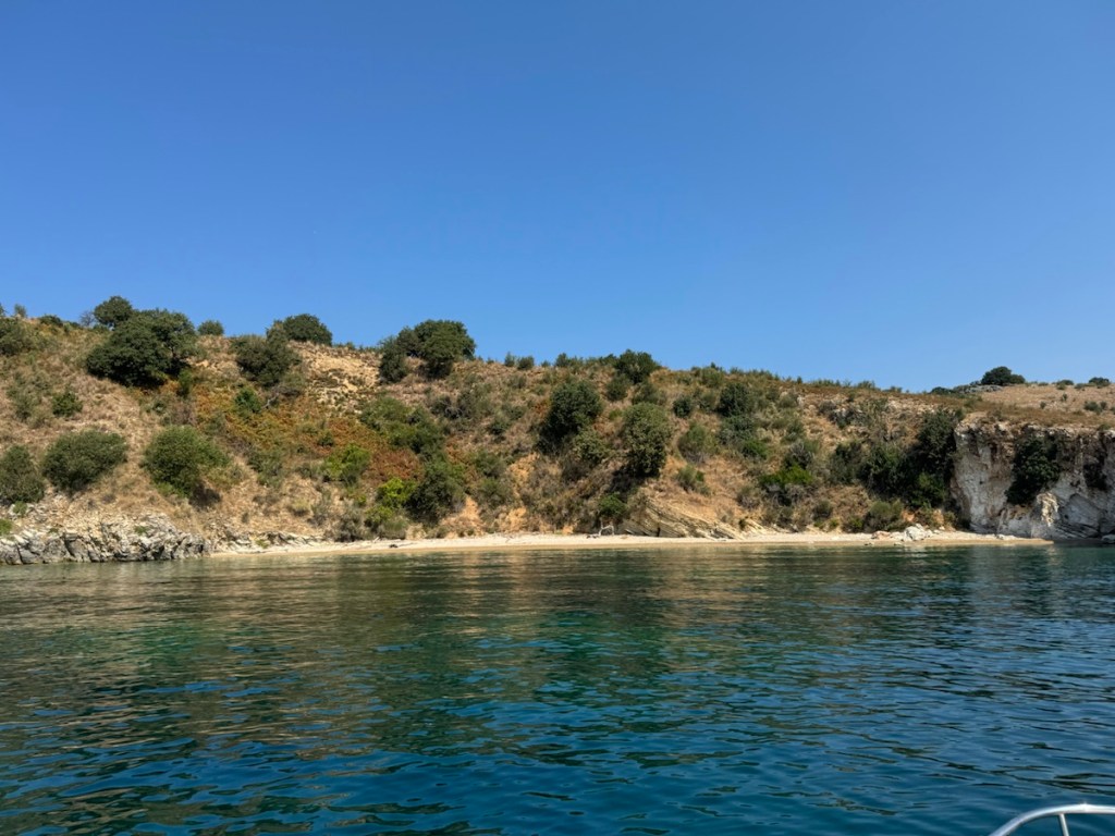 The bay was very quiet, surrounded by hills with a sandy beach. Several small day boats visited during the day, but by the evening, we were all alone, heaven. Welcome to Albania away from the main towns.
