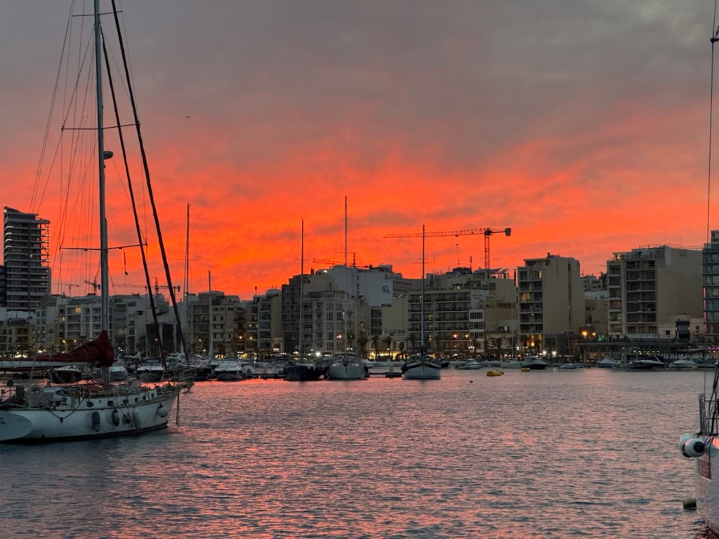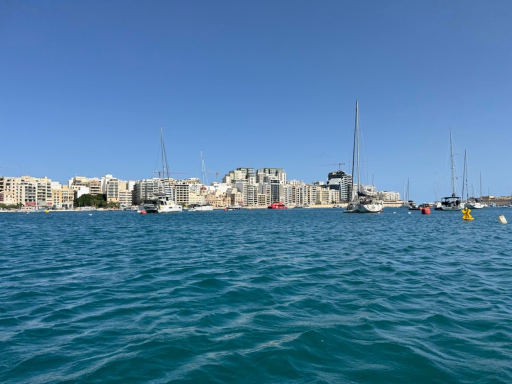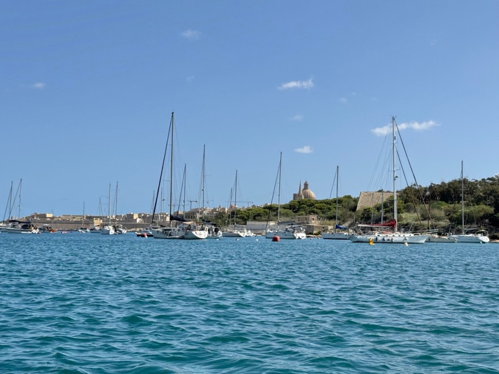 It was very hot and sunny when we arrived in Sliema bay and moored on one of the private buoys, that are kindly made available by the owners when they are not needed. Here, there were views of the familiar high rise apartment blocks and huge cranes (of which I counted at least 15) lining the waterfront. We recognised many of the boats already there as friends that we had met previously on our travels.