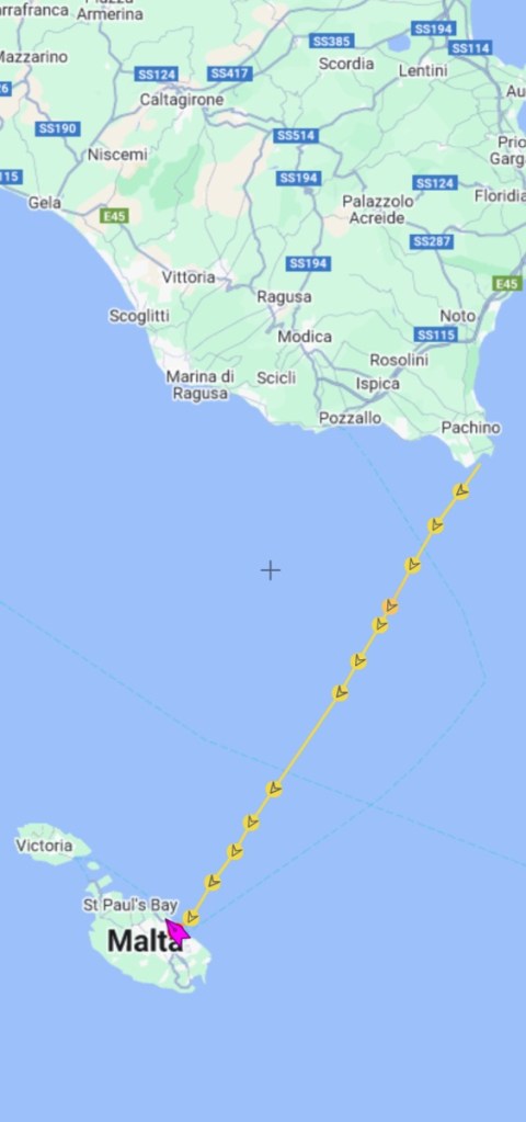 After the brief problem with the gears, our journey from Portopalo was fairly uneventful. We set off early with a light, force 3, northeasterly and had a calm sail south towards Malta, watching the sun rise up from the sea and avoiding the many fishing boats on the way. This leisurely sail lasted all morning until the wind shifted to the south, coming from directly in front of us, so we motored the last couple of hours.