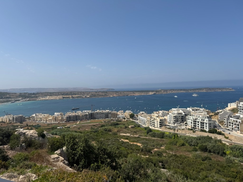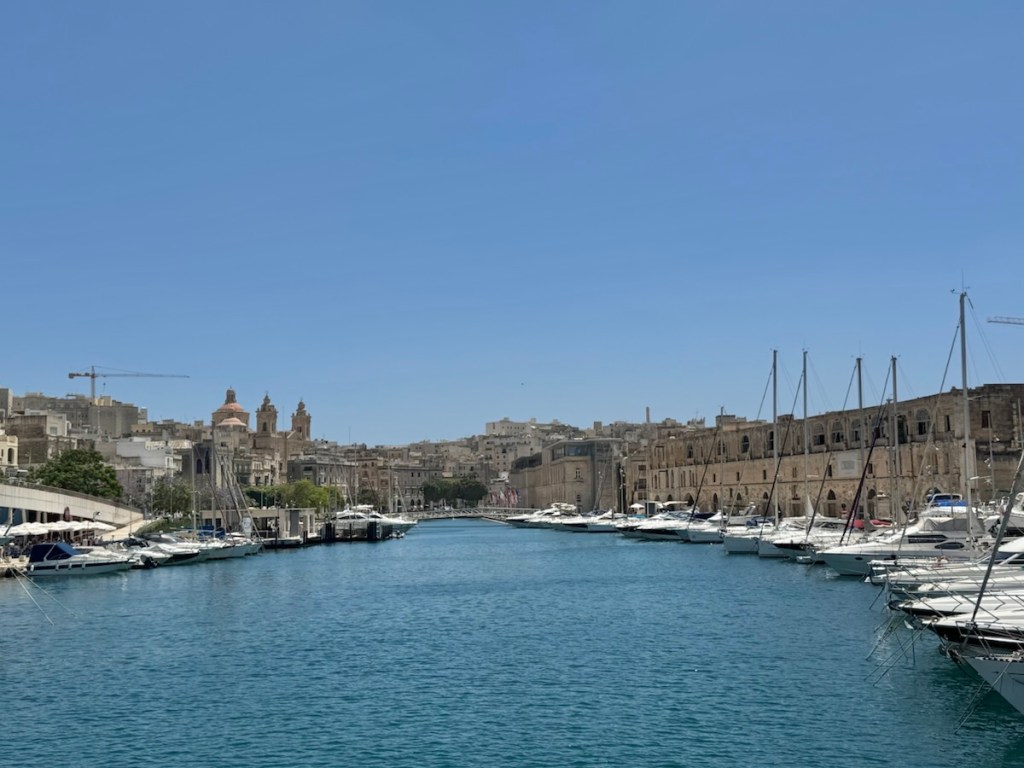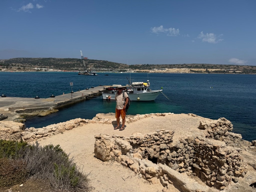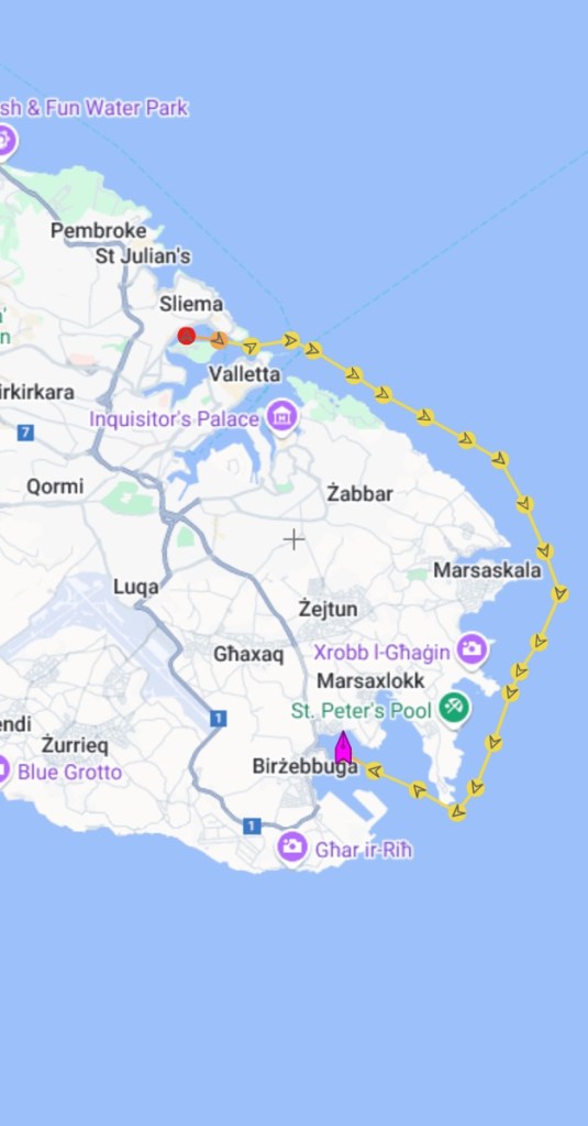 But with the engine now as good as new, we slipped our lines and finally left the dock. We decided to stay close by for a few more days to test that everything was working and set off on a 10 nm journey to Birzebugga on the south side of the island. We motored all of the way and were very happy that the engine seemed to be running better than it had for years. We have visited previously and anchored in our usual spot with views of the container ship terminal.