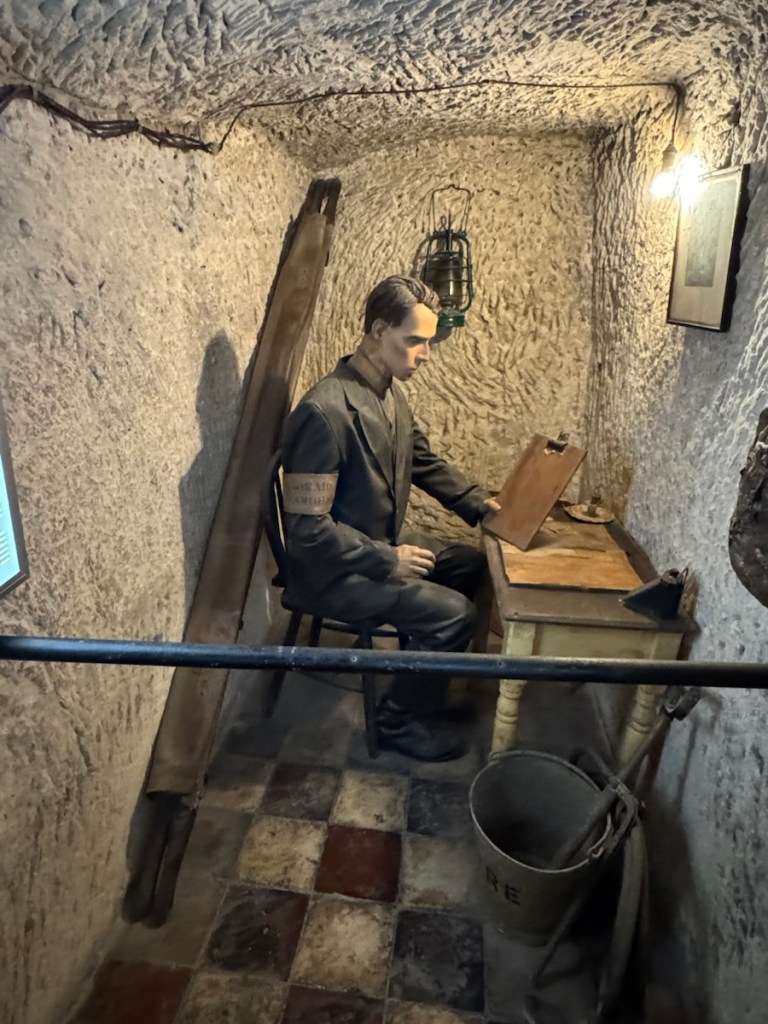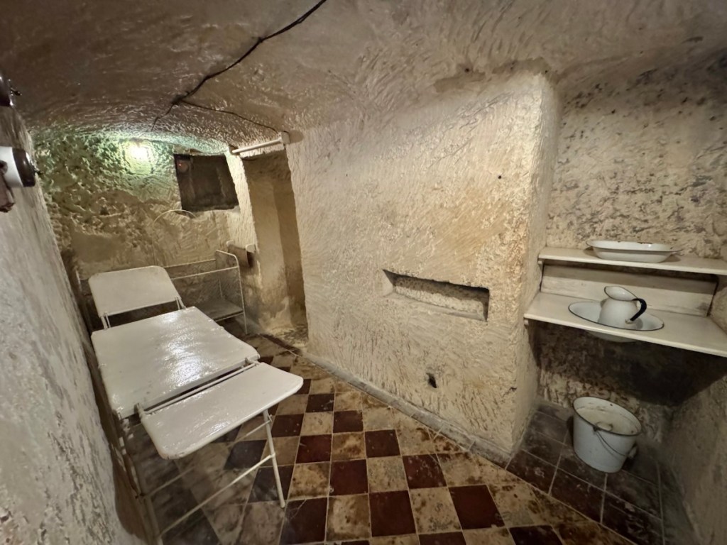 After a walk around, as a special anniversary treat, Paul took me to the Malta at War museum, not quite what I was expecting! It’s main highlight was a network of underground air raid tunnels used during WWII. We had to wear hard hats which was good because we did hit our heads several times on the low ceilings. It was actually quite interesting.