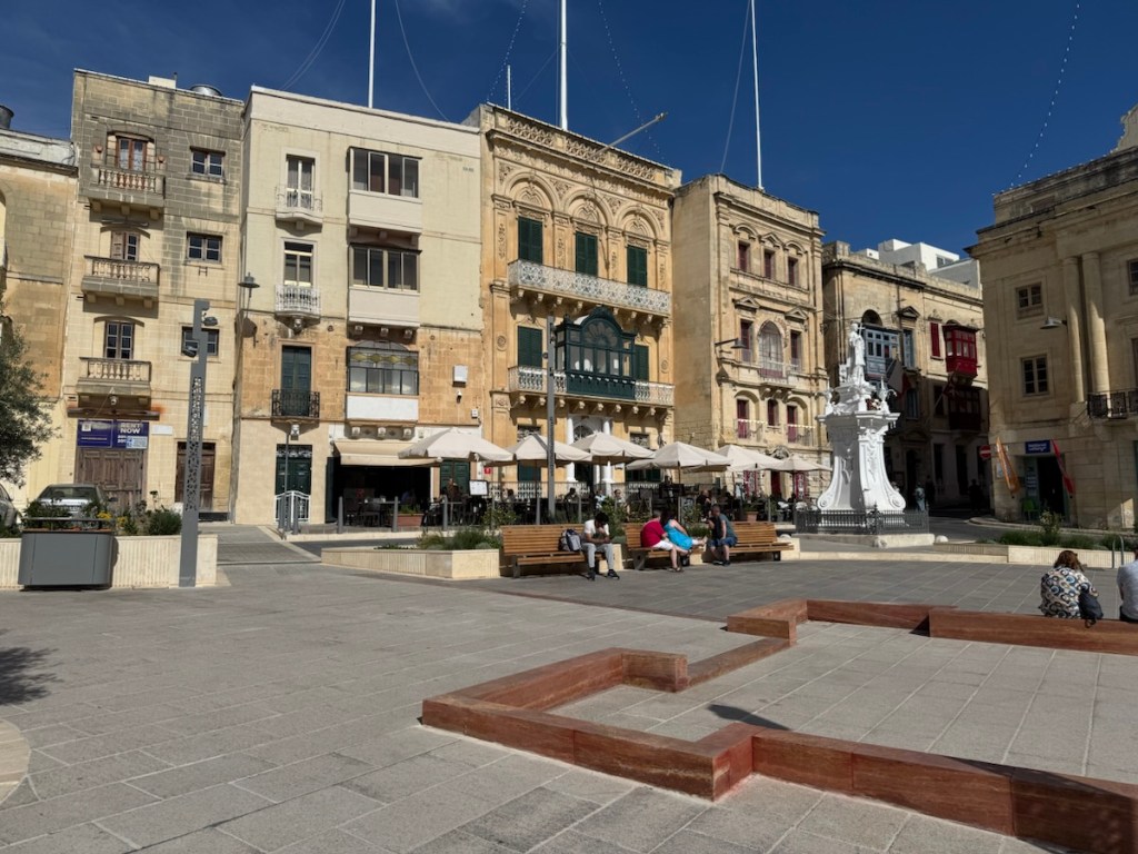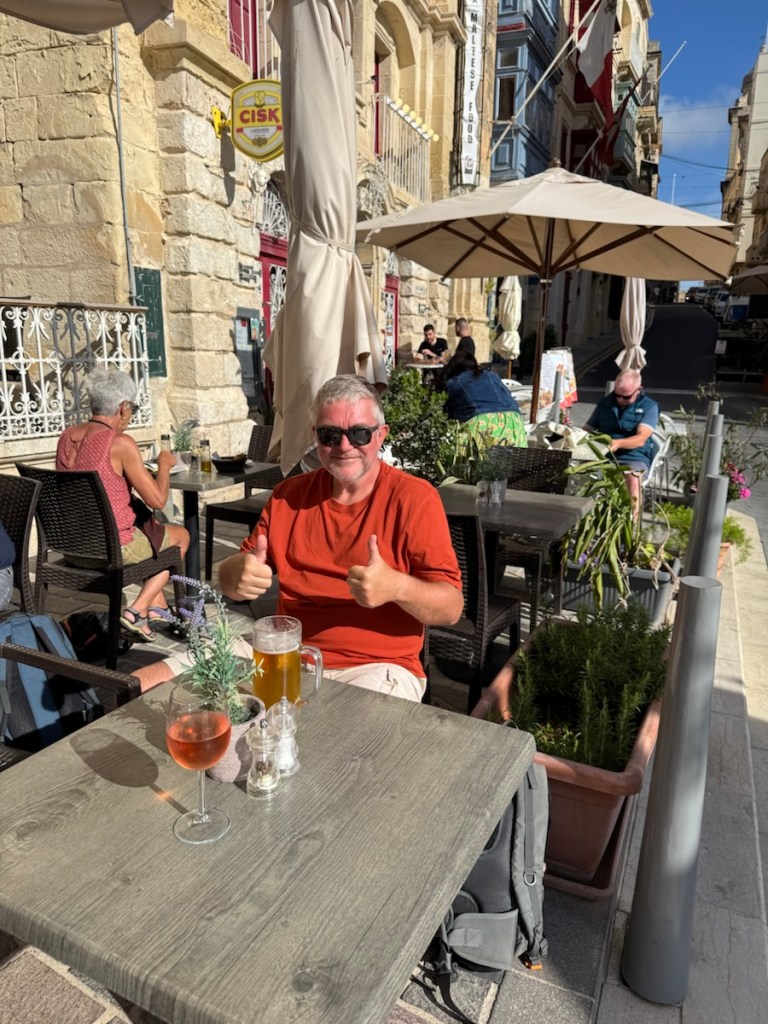 Afterwards, we found the main square and stopped for refreshments. We were told that we had sat down at the oldest building in the area, it was originally a palace and more recently served as one of Malta’s ubiquitous band clubs. It certainly had a very decorative frontage and hallway plus an attractive rear courtyard.