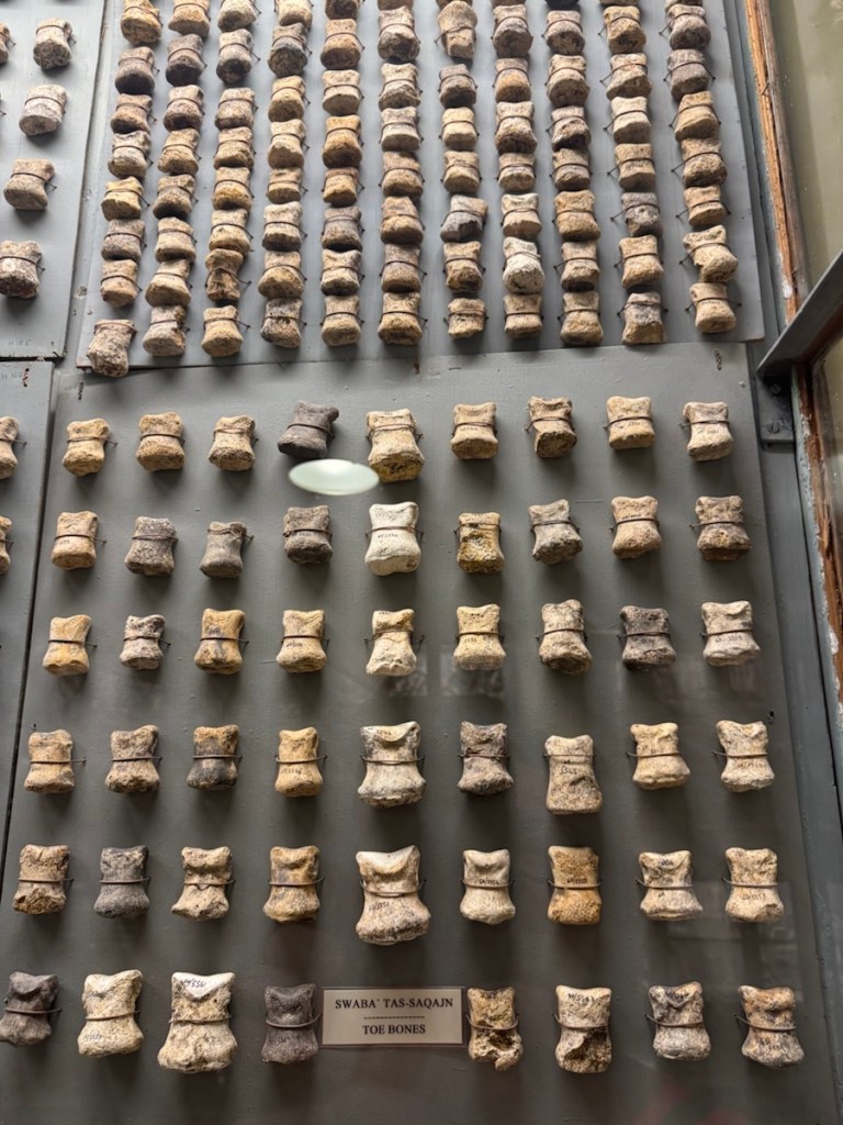 Rows of the ancient animal bones, unearthed from Ghar Dalam cave, are exhibited in a Victorian style. Wooden cases display thousands of identical animal bones on boards. The old exhibition hall has been preserved in its original state and has now become a museum piece in itself.