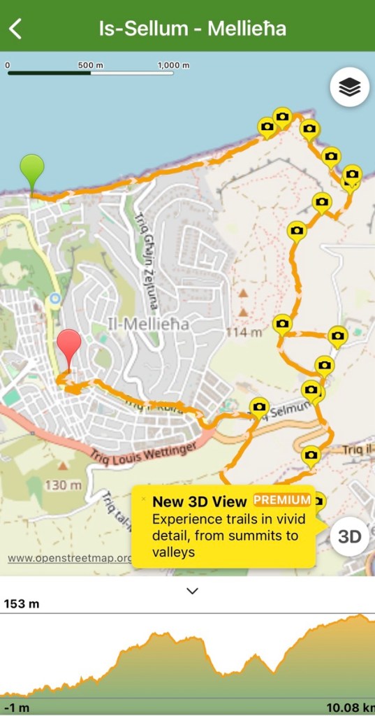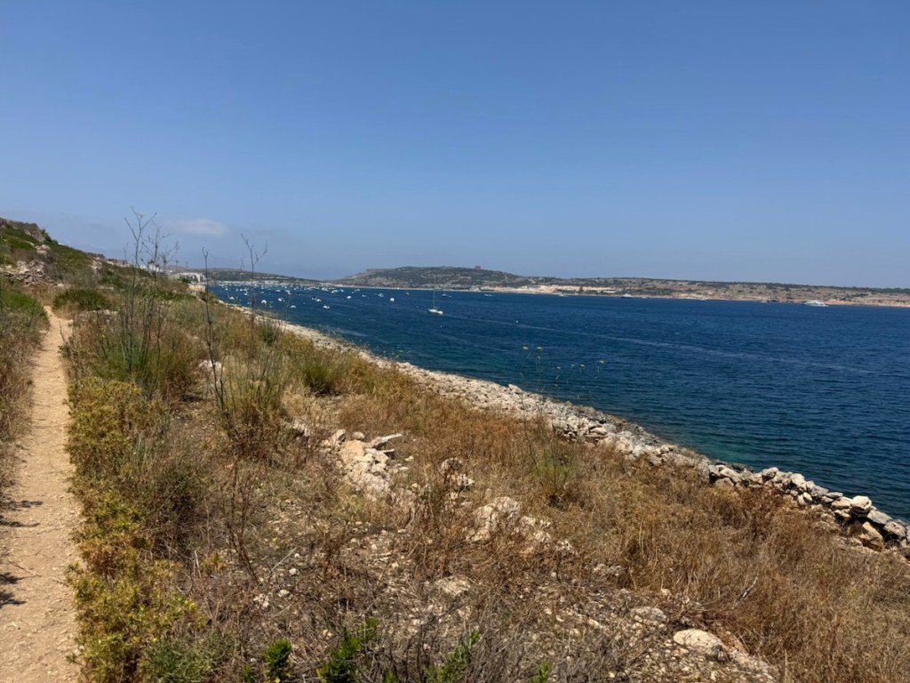 Mellieha town sits on top of a steep hill with a large promenant church looking out over the bay. We set off on a walk to the town but decided to avoid the direct approach straight up the hill and went the long way round. The route would take us along the coast, up through the countryside and eventually arriving at the church.