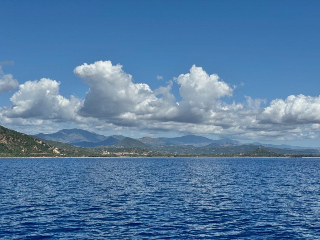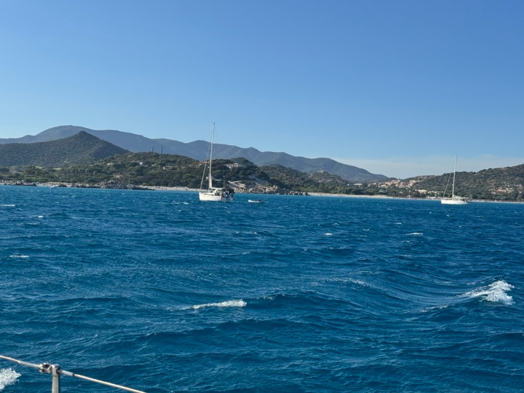 After 150 nm, we approached Capo Carbonara and anchored at Porto Giunco in clear water surrounded by hills and sandy beaches. The journey had taken 32 hours so we were ready to relax.