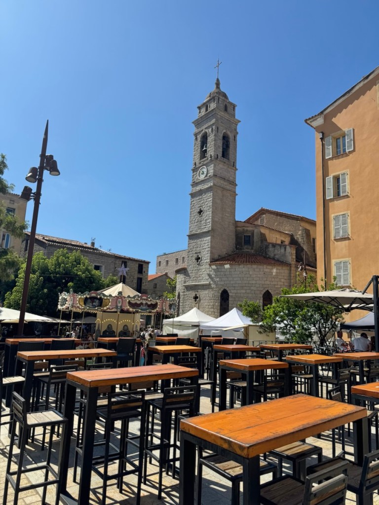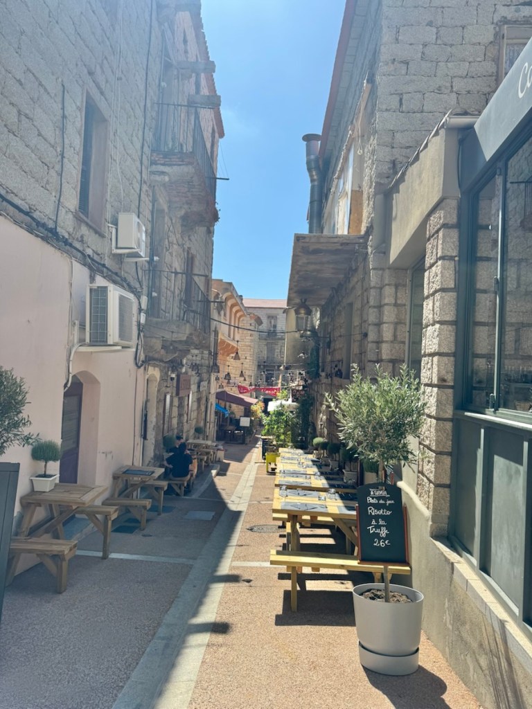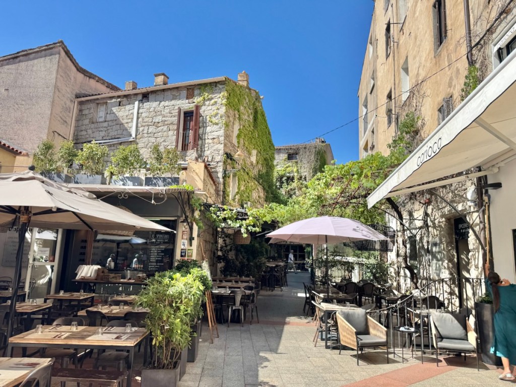 We walked through the ancient gates to the 16th-century Genoese citadel. Inside the fortified walls of the Bastion de France are narrow paved streets and a main square, Place de la République, lined with shops, bars and restaurants.