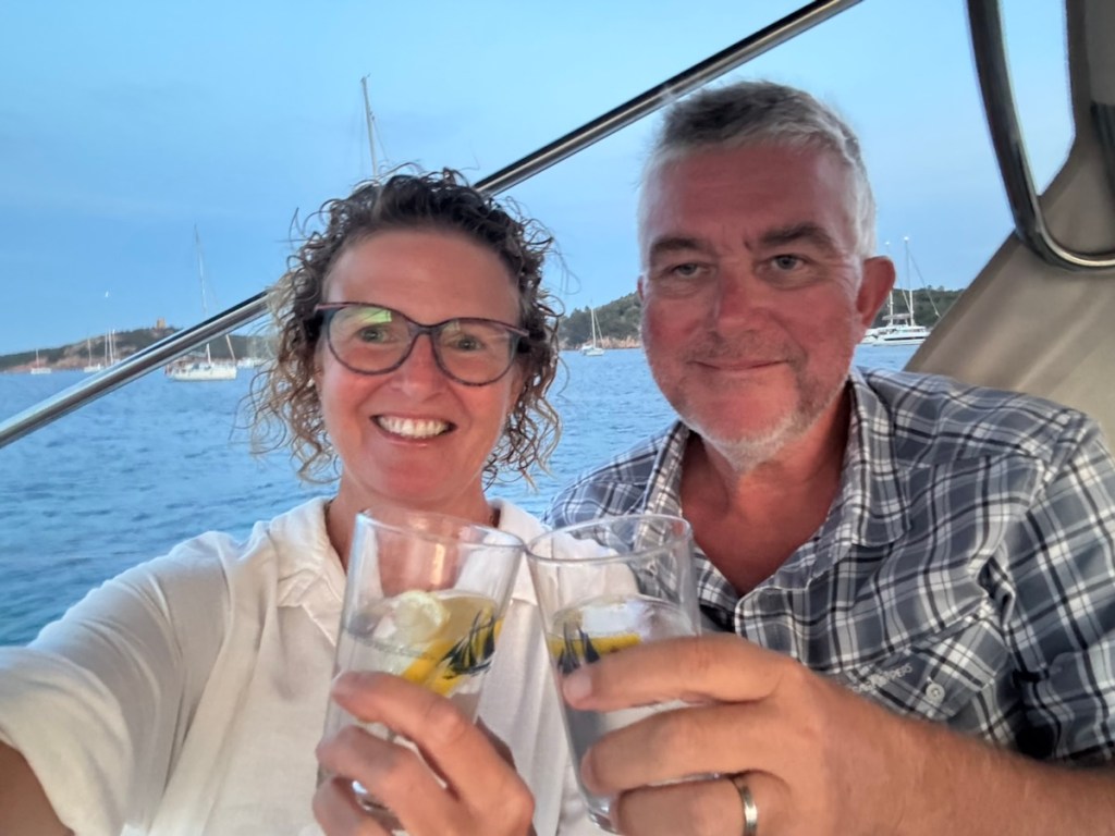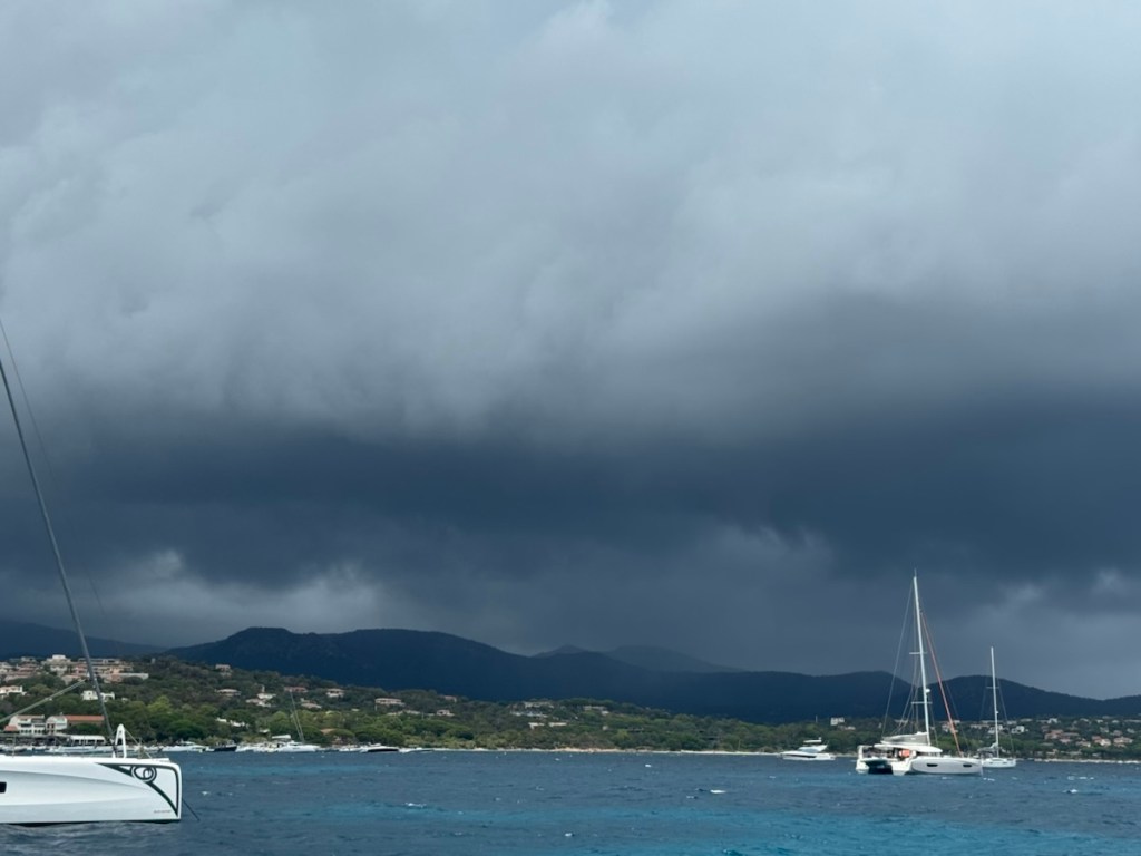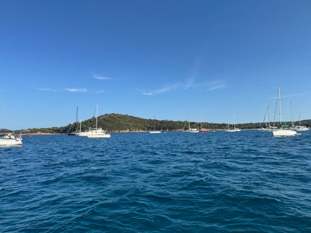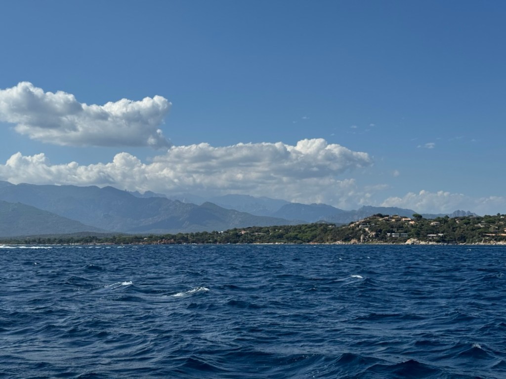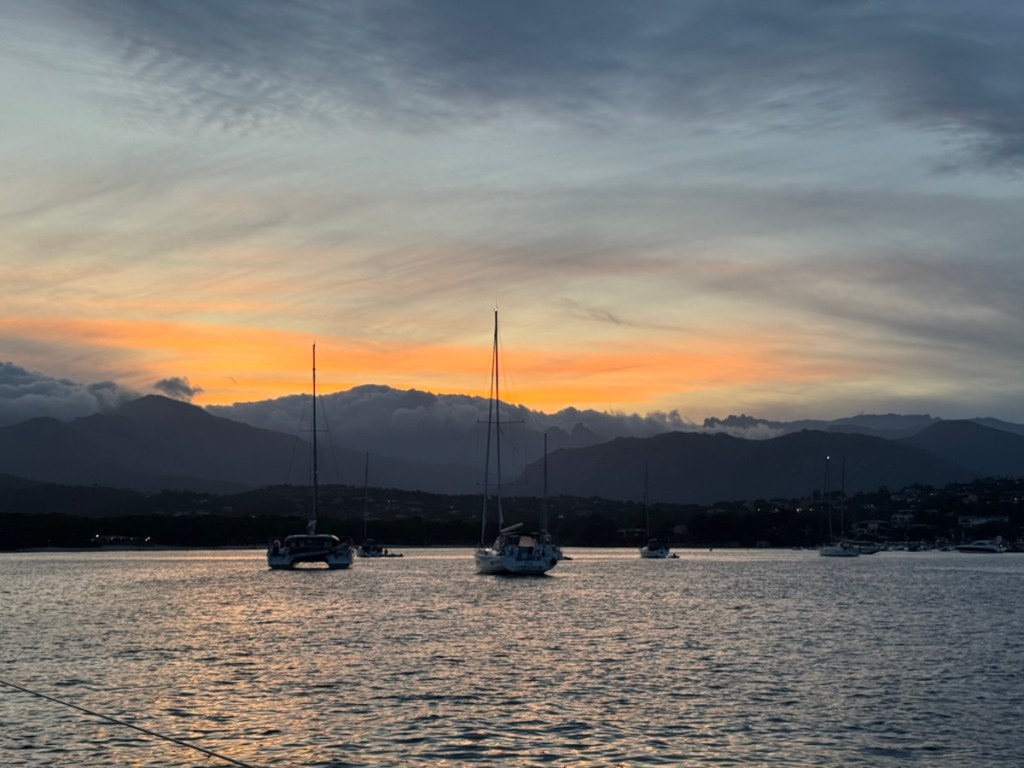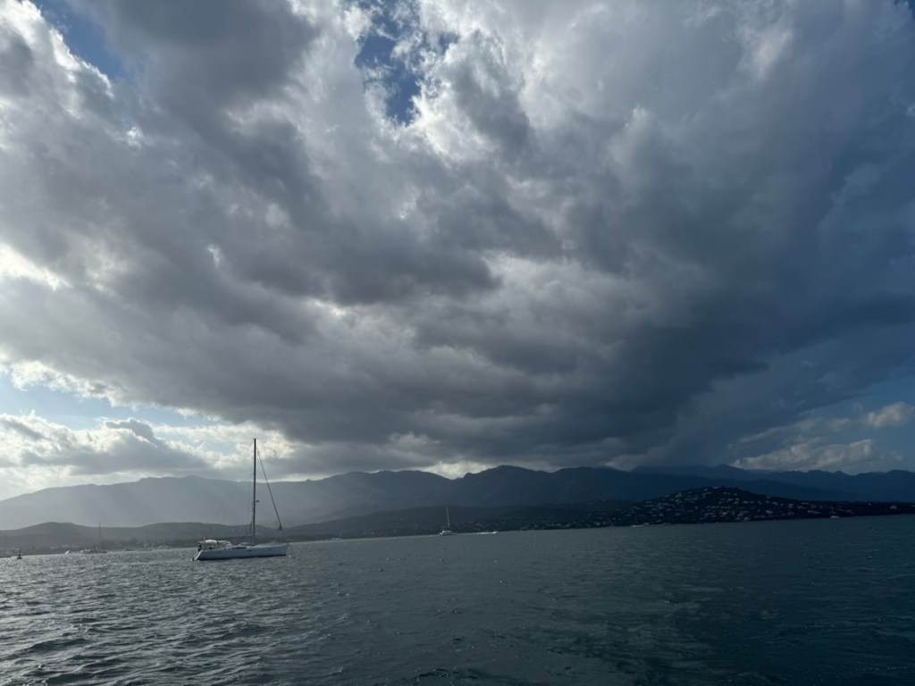 Following this, the sun came out, but unfortunately, it left behind a big swell so we lifted the anchor and returned to Porto Vecchio which would be more sheltered again. There were more black clouds and light rain around but this blew over and the sea flattened, a rainbow appeared in the sky as we dropped our anchor.