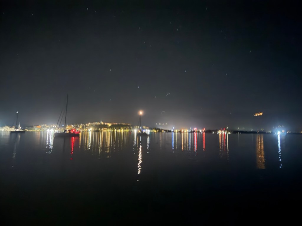 During the night, the wind continued gusting 20-25 kts, a large boat had anchored closer than we would have liked and although the anchor was holding, we decided to take it in turns through the night to keep watch. Not ideal, but we wouldn’t have been able to sleep anyway with the worry of either us, or someone else dragging. There was a colourful sunset and sun rise to watch.