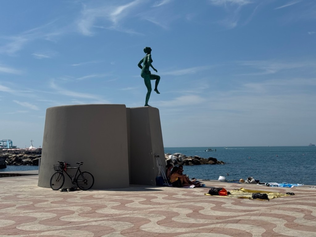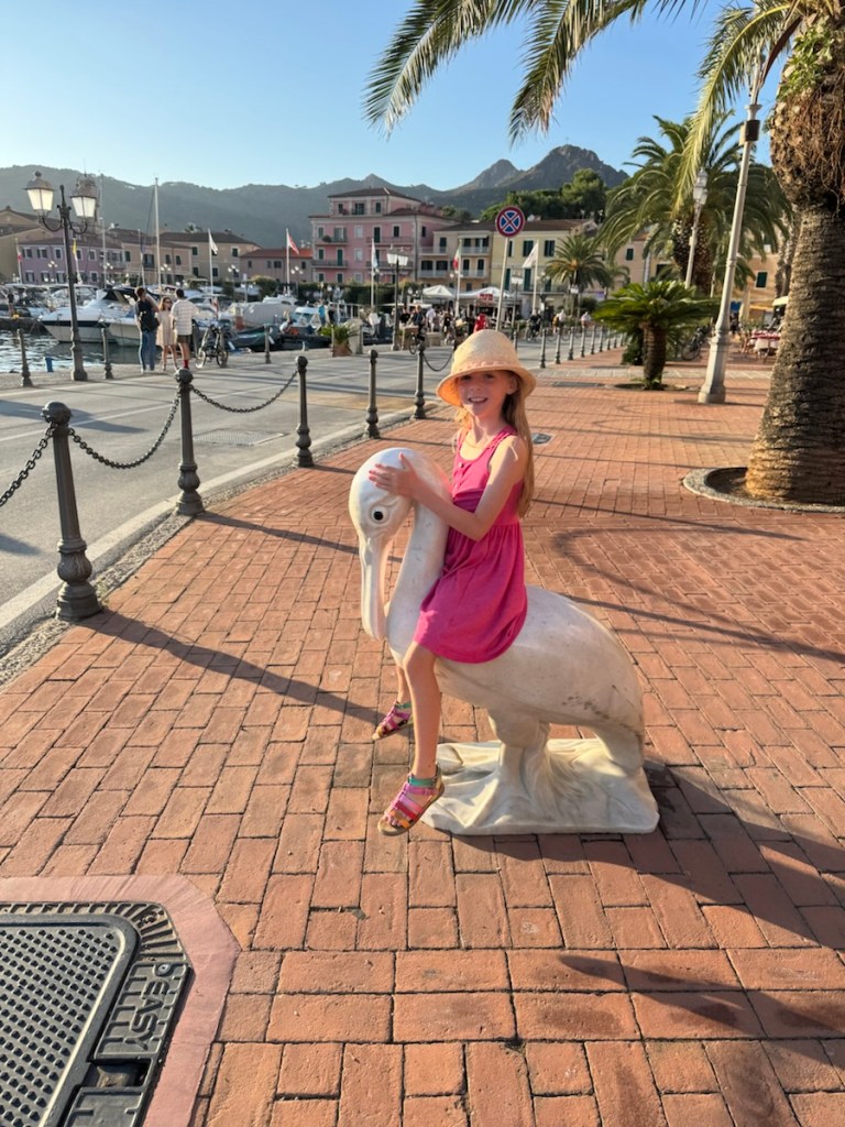 There is a ‘beach’ close to the harbour, well, more of a scruffy, rocky area, but perfect for a swim, the water was shallow with a sandy bottom. The Duchess of Austria visited at the beginning of the 19th century and obtained permission to build a bathing complex here. The area is marked with a statue of La Bagnante (The bather).