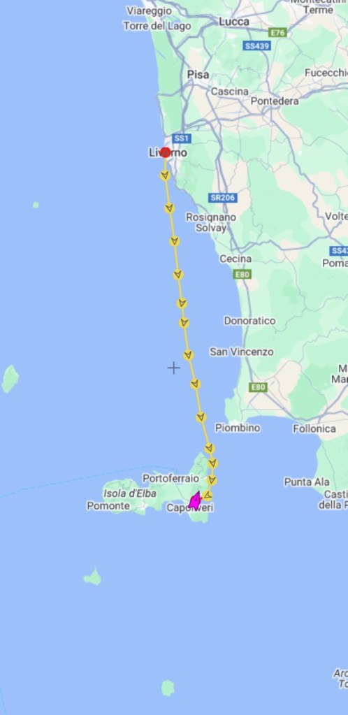 Time passed quickly and soon it was time to leave. There were some fairly strong winds forecast for late afternoon so we left the bay at first light, and headed back up the coast to Livorno, arriving on the dock before the wind had picked up too much.