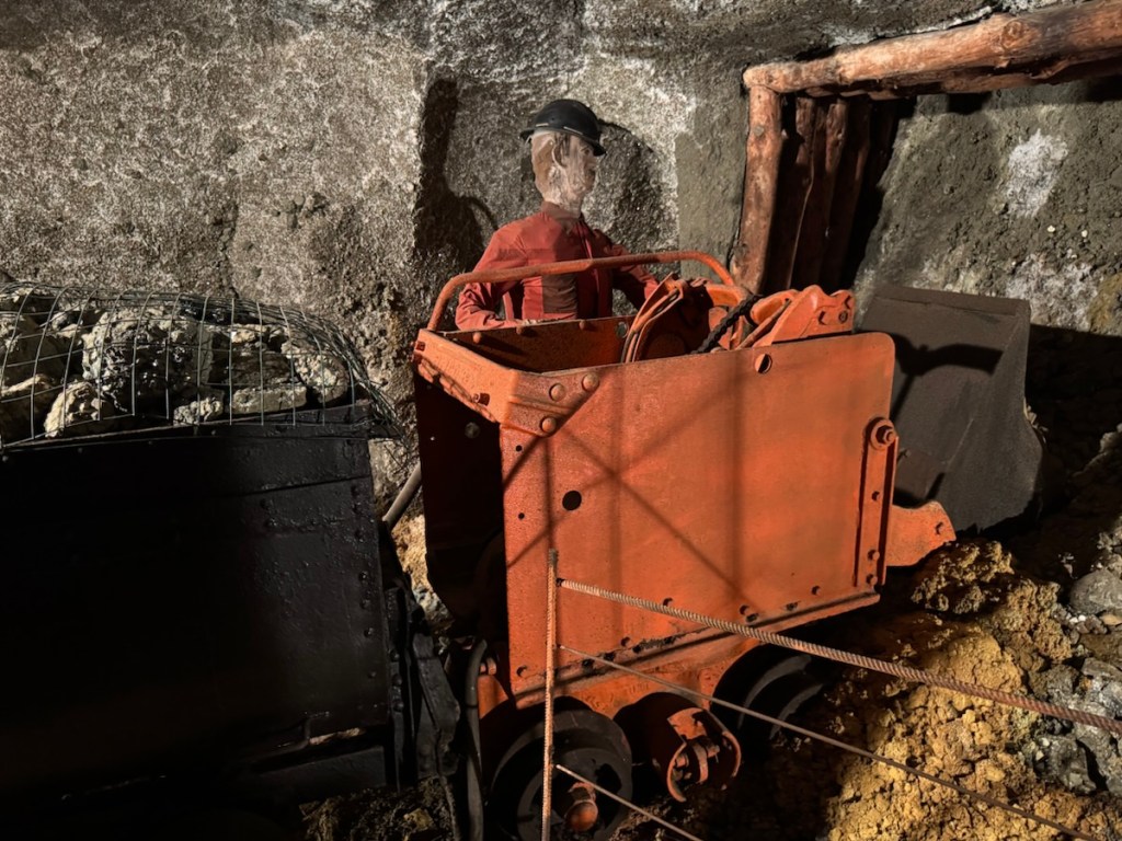 They took us on a small train into a mine and caves to discover fossils and crystals. There were some rather disturbing characters demonstrating the work and machinery involved.