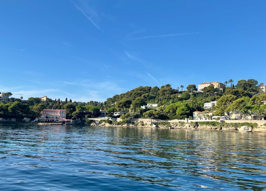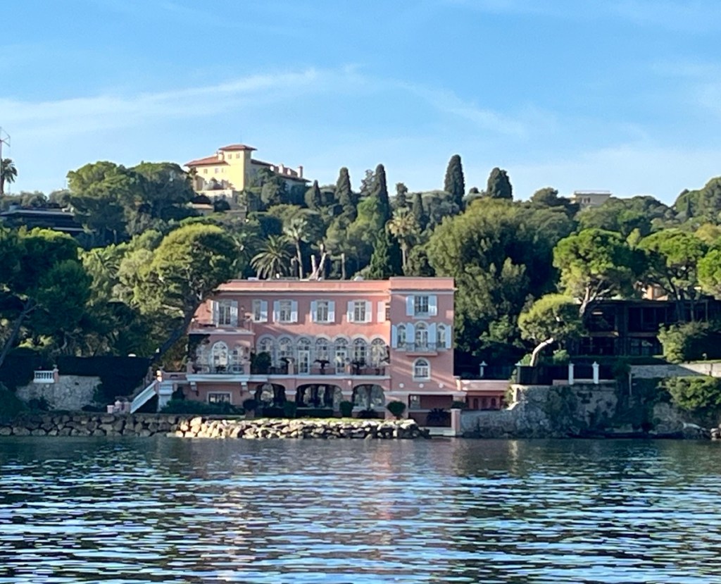 Being much smaller, we were able to anchor closer to shore, in the shelter of Saint Jean Cap Ferrat peninsula, with a view of David Niven’s villa on the sea front and Rothschild’s manor house overlooking us from the top of the hill.