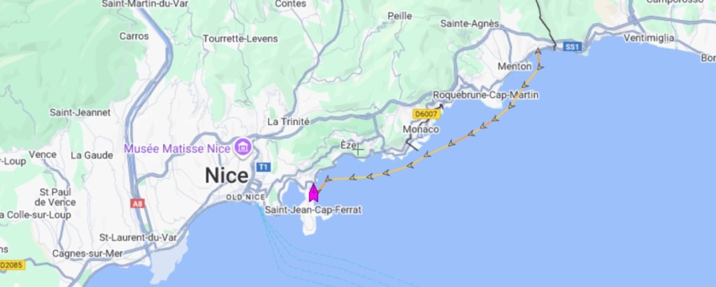 We left Menton and had a short trip west along the coast to Beaulieu Sur Mer, sailing past Monaco on the way.