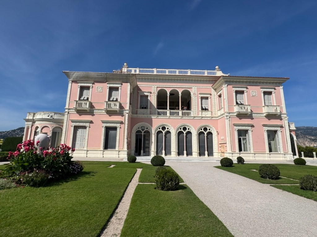 The Belle Époque Villa Ephrussi de Rothschild, also called Villa Île de France, was designed by the French architect Aaron Messiah and built between 1907 and 1912, for baroness Béatrice Ephrussi de Rothschild. A member of the Rothschild banking family and the wife of the banker Baron Maurice de Ephrussi. The baroness built her rose tinted mansion on top of the hill overlooking both the bay of Beaulieu Sur Mer and Villefranche Sur Mer. It is surrounded by nine themed gardens; French, Spanish, Florentine, stone, Japanese, exotic, Provençal, Sèvres and a rose garden.