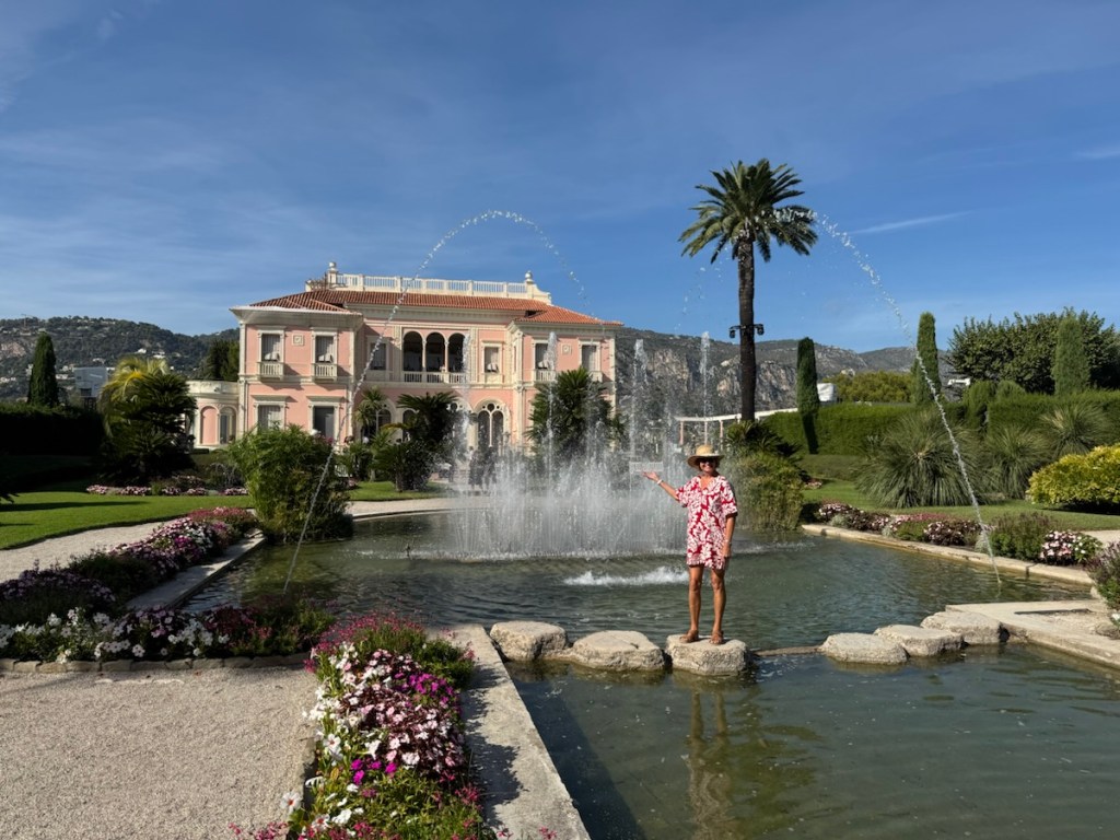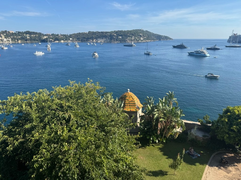Unfortunately it’s not open to the public to look inside so we walked up the hill to Villa Ephrussi de Rothschild. We had good views on the way of all the private villas hidden in the trees and Ziggy in the bay.