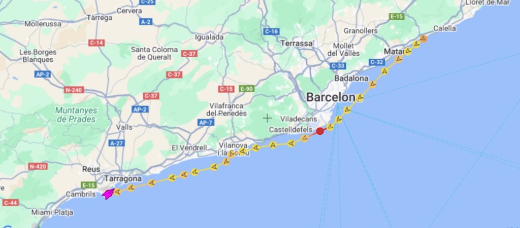 We left the marina at Arenys de Mar and headed towards Tarragona which was 70 nm, with a possible stop at an anchorage on the way depending on the conditions.