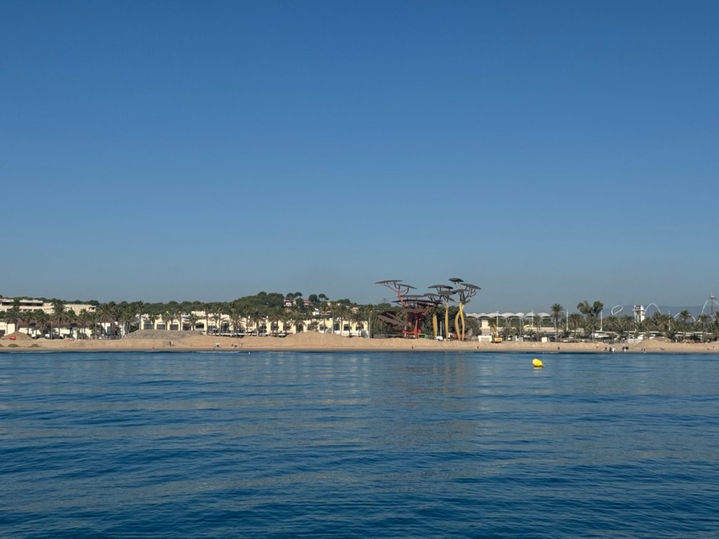 A big bright moon rose helping us on our way, and we arrived at a bay just opposite Tarragona’s large commercial harbour at 3am and this was protected from the swell. We managed to find a good spot and dropped the anchor in a calm(ish) sea.
