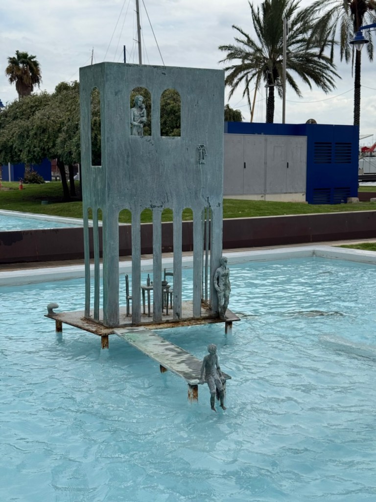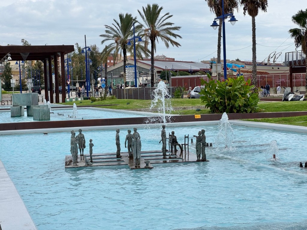 Fishing boats are moored beside the port next to the old fishermen’s neighbourhood, El Serrallo. The catch of the day is auctioned here in the afternoons, it is a popular area among locals who come to eat in the numerous fish restaurants. The fountains were full of miniature statues and some of the houses had large wall murals.
