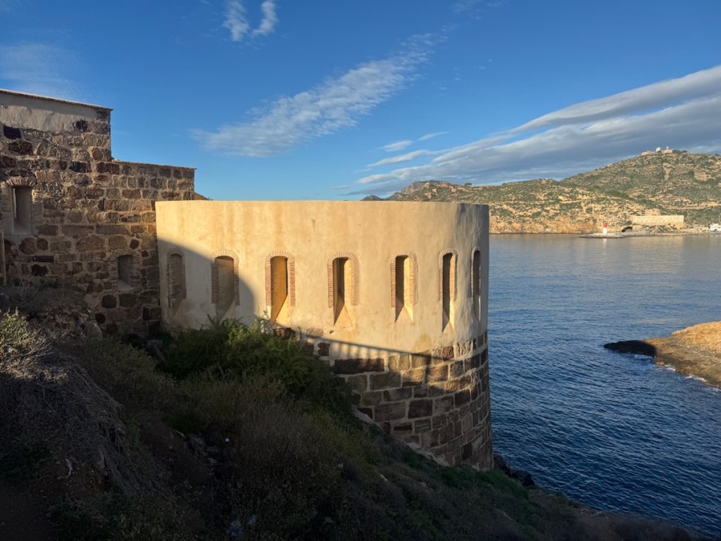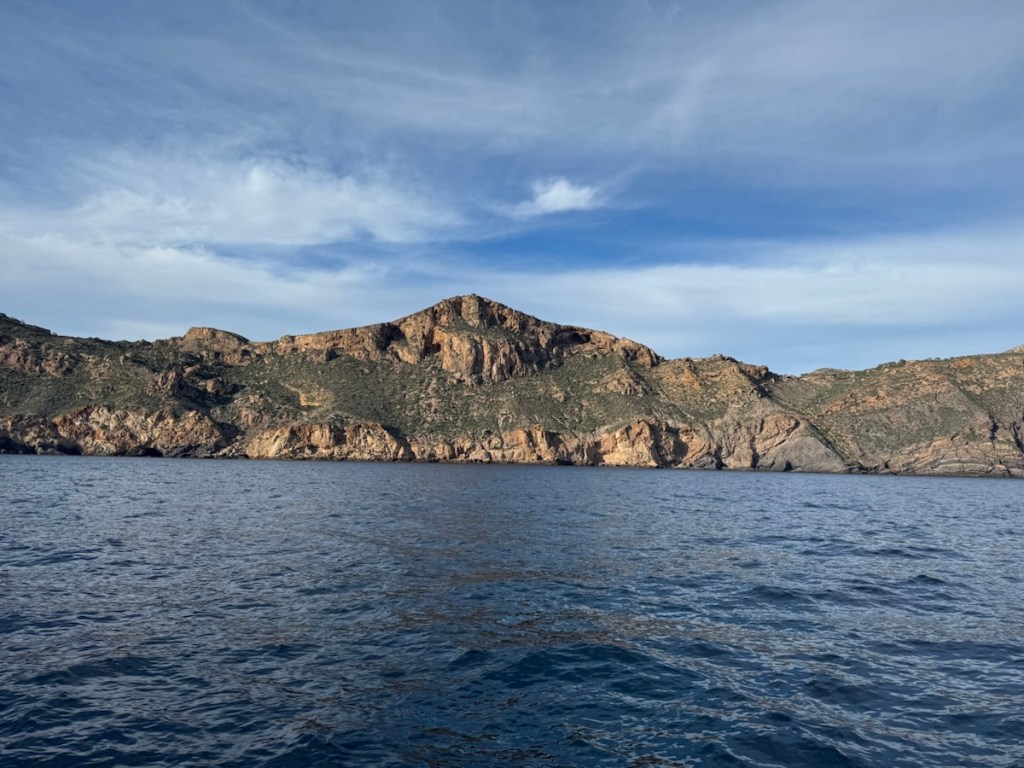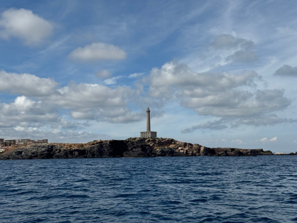 Travelling south along the coastline of green hills and rocky cliffs, we eventually passed the Mar Menor and a tall lighthouse on the corner as we turned west for the last few miles.