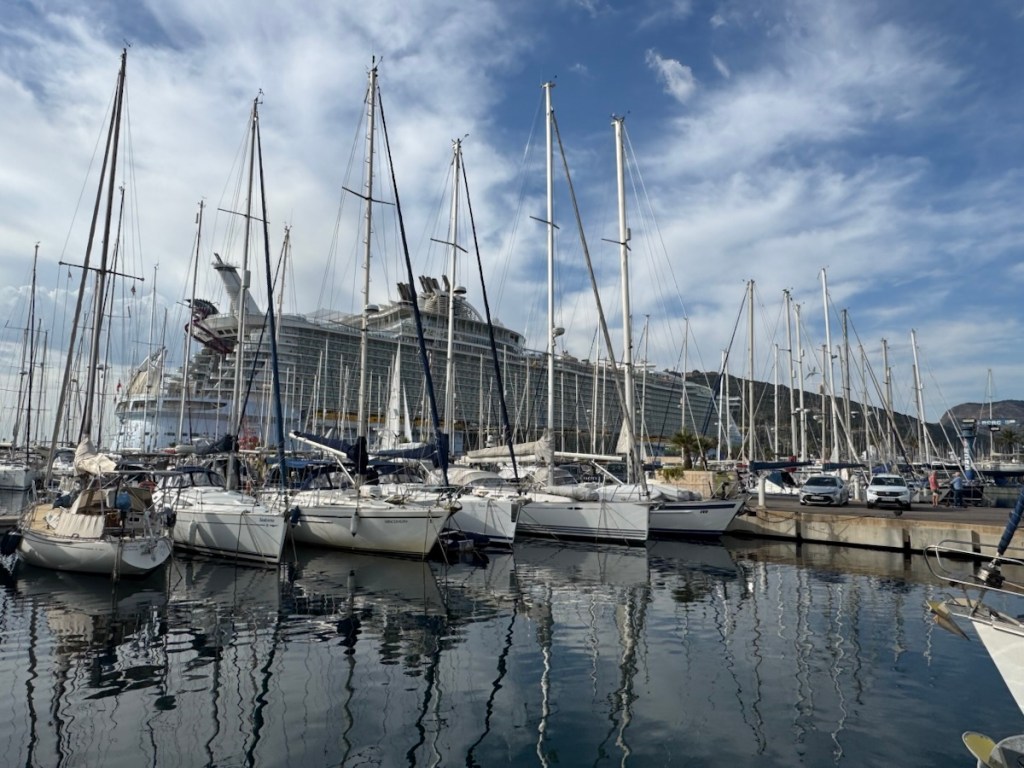 After 10 hours, we arrived at the marina in Cartagena which would be Ziggy’s home for the winter, a deep natural harbour in the ancient city of Cartagena. It is also a popular cruise ship port.
