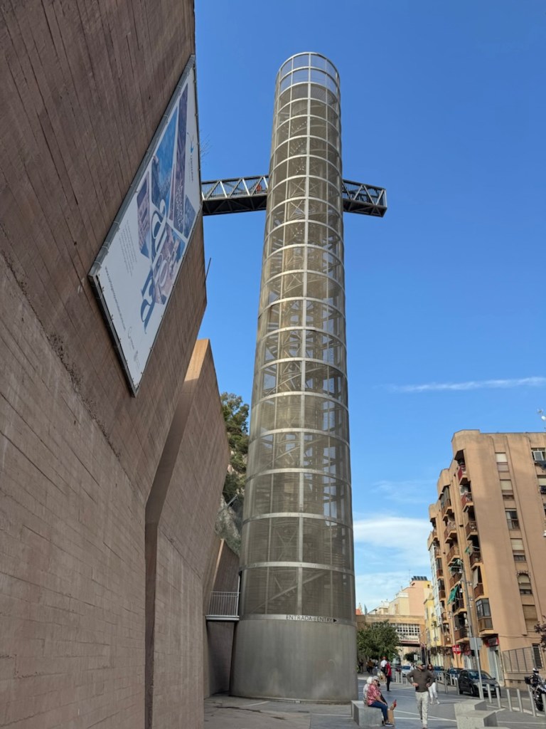 Just inside the city walls is a glass panoramic elevator which takes you quickly 45 metres up the hill, a walkway leads to the site of the Roman theatre, cathedral and castle.