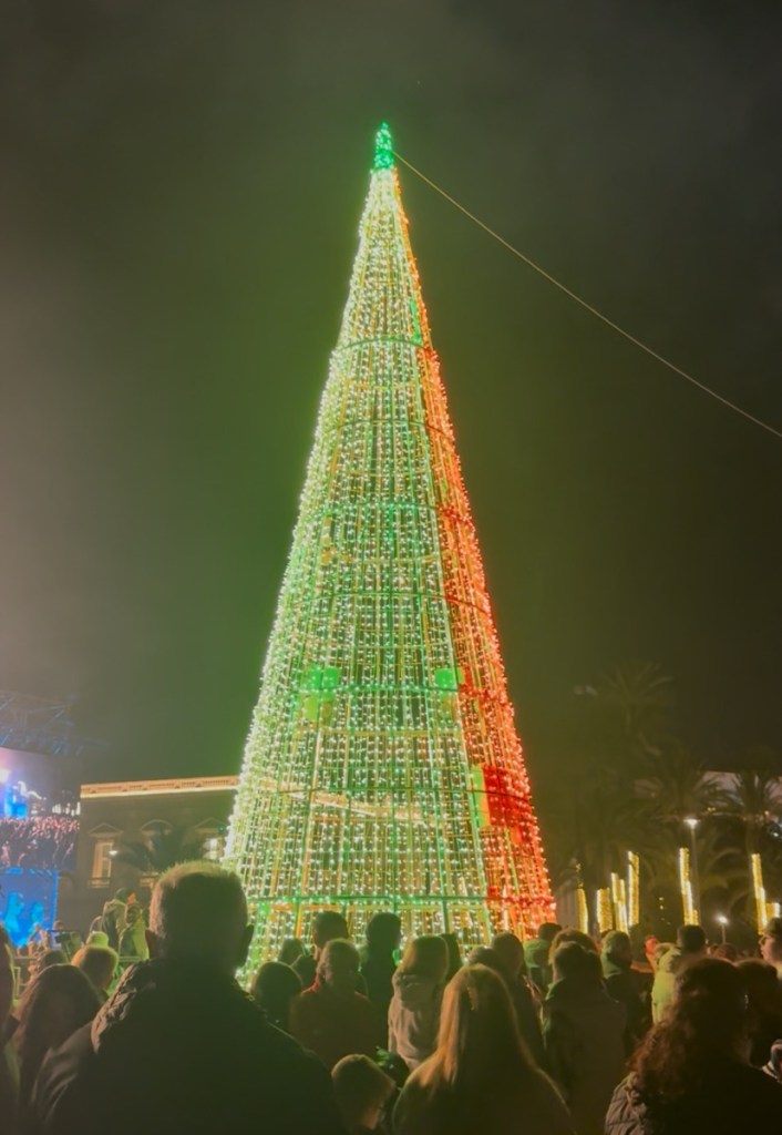 Fortunately we had arrived in time to see the celebrations for switching on the Christmas lights. A huge stage was set up overlooking the port, it started with a concert, where a modern choir belted out some well known festive tunes to crowds of people.